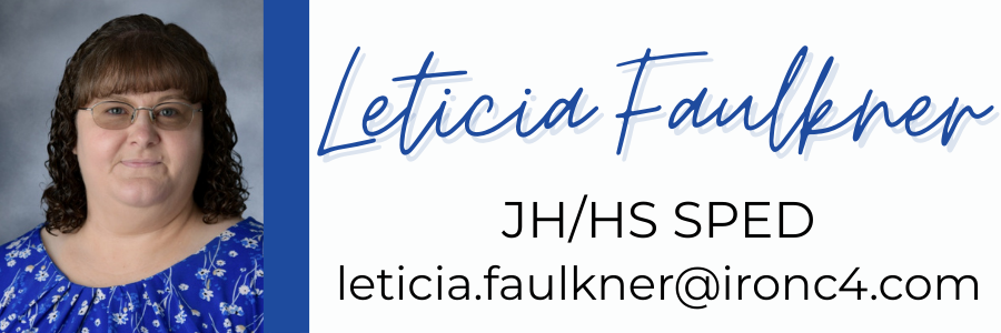 | Sharpe, Melissa JH/HS SPED Aide melissa.sharpe@ironc4.com | Yount, Marty JH/HS Agriculture marty.yount@ironc4.com |